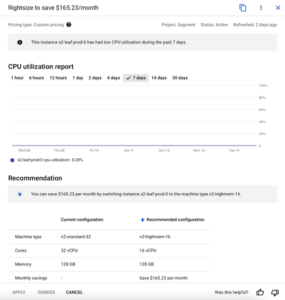 Figure 2: GCP Recommendations for VM usage