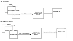 If your infrastructure uses kubernetes for orchestration, installing KubeCost can be useful for assessing detailed costs, along with savings recommendations. LiveRamp’s current setup uses Helm and Terraform to install new tools, OpenTelemetry for observability and Grafana for visualization. Here is the infrastructure setup: