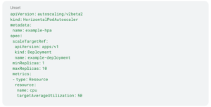 Horizontal Pod Autoscaler (HPA): Use Kubernetes Horizontal Pod Autoscaler to automatically adjust the number of pod replicas based on observed CPU or memory utilization: